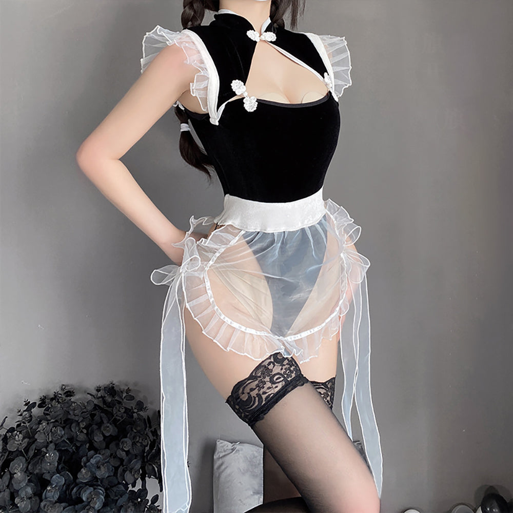 Package Including: 1x nurse cheongsam dress+1x panty+1 pair of stocking