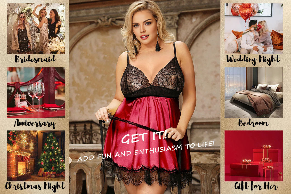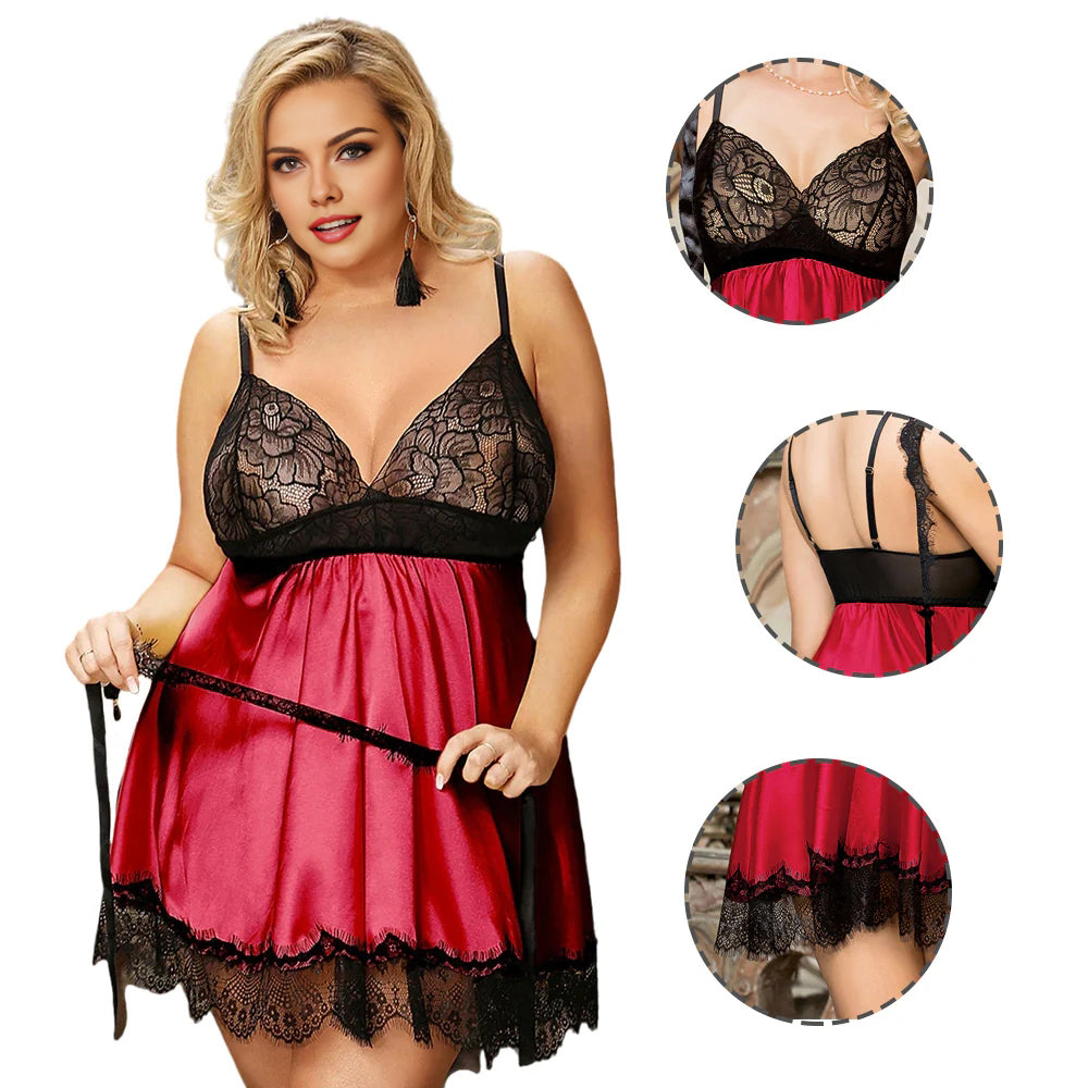 Women Plus Size Silk Lace Floral Chemise Babydoll This set is a perfect combination of style, comfort, and sensuality, making it stand out from other lingerie options available in the market.The set is made from high-gloss, high-density simulated silk material that gives it a shiny and glamorous look. The fabric is incredibly soft and comfortable, making it perfect for a good night’s sleep.