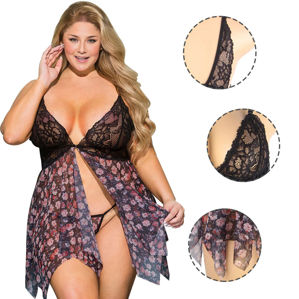Women Plus Size Elegant High Quality Sexy Babydoll.One of the main advantages of this product is the use of both lace mesh and printed mesh, which creates a breathable and sensual fabric that feels amazing on the skin. The intricate lace detailing adds a touch of sophistication to the overall design, making it perfect for any special occasion.