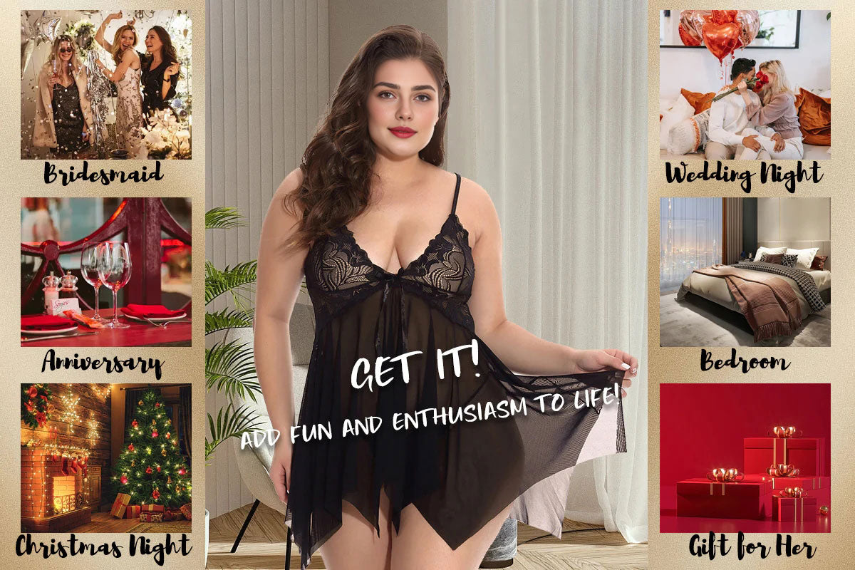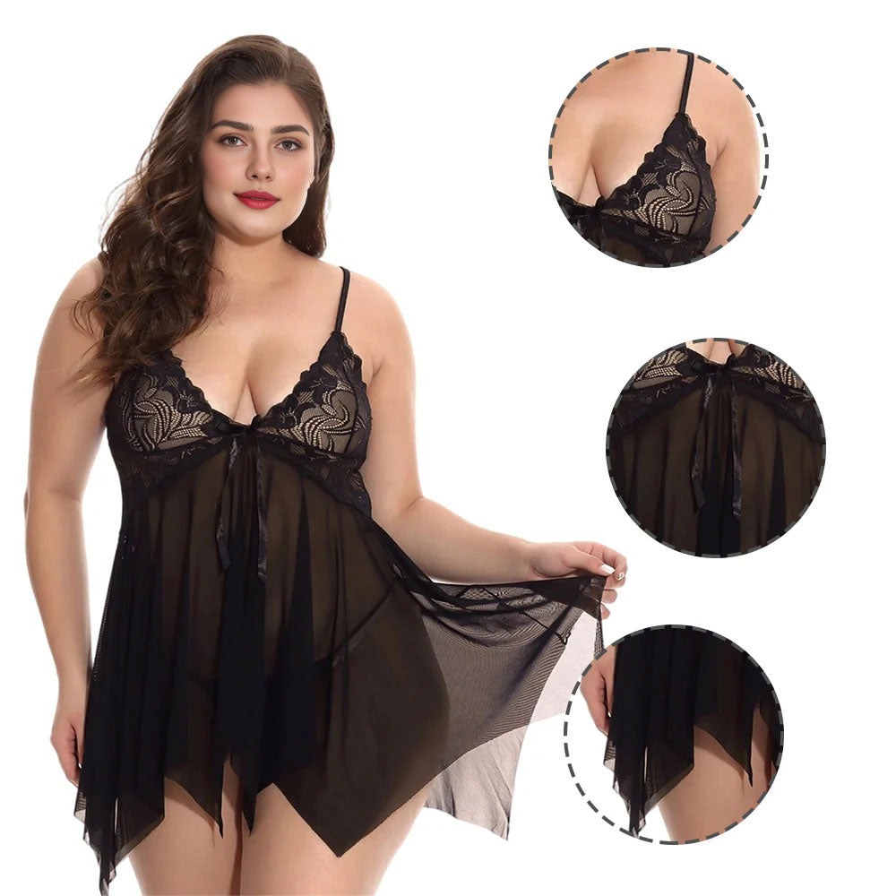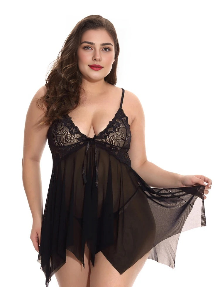 Women Plus Size Deep V Neck Soft Lace Sexy Sheer Mesh Babydoll.The Women Plus Size Deep V Neck Soft Lace Sexy Sheer Mesh Babydoll is a stunning lingerie piece that is a must-have for any nightdress collection. Its delicate fabric, V-neck design and butterfly trim make it the perfect choice for anyone who wants to feel confident and sexy.