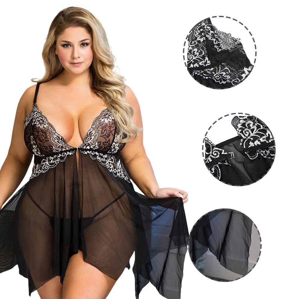 Women Plus Size Floral Embroidery Lace Babydoll.This lingerie product features a deep V-neck for a chic look. It accentuates your cleavage and gives you confidence.