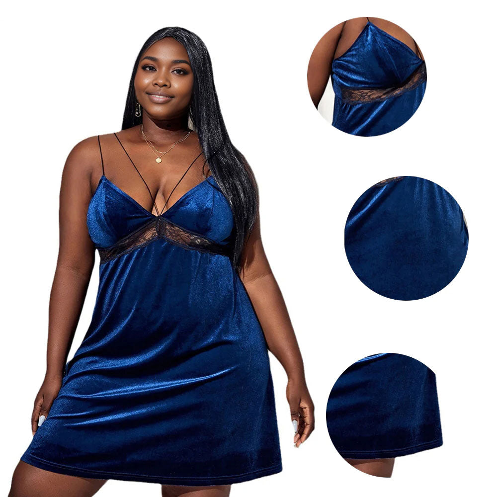 Women Plus Size Velvet Hollow Lace Babydoll.The top is also designed with a small amount of lace details on the chest, adding a touch of sexiness and mystery to the overall design. This feature is perfect for women who want to feel confident and sexy while lounging around the house.