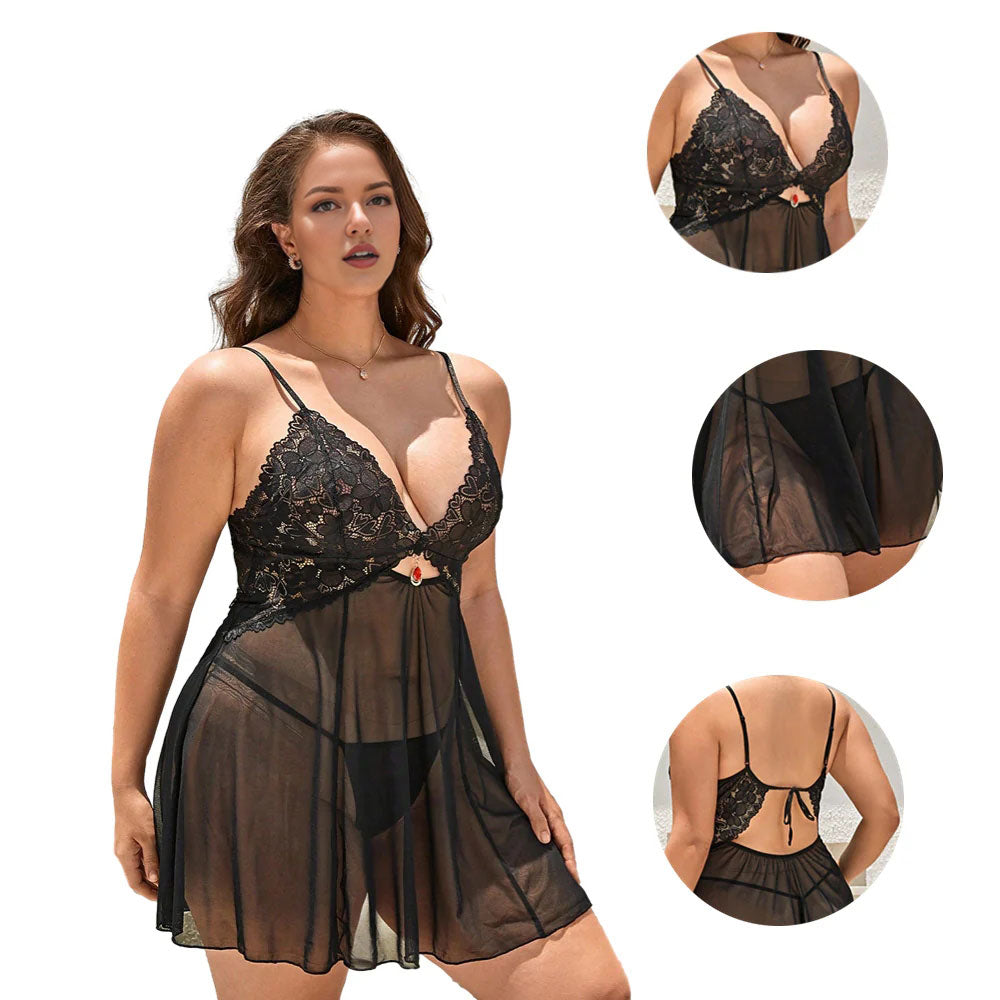 Women Plus Size Deep V Neck Soft Lace Sexy Sheer Mesh Babydoll.The Women Plus Size Deep V Neck Soft Lace Sexy Sheer Mesh Babydoll is a stunning lingerie piece that is a must-have for any nightdress collection. Its delicate fabric, V-neck design and butterfly trim make it the perfect choice for anyone who wants to feel confident and sexy.