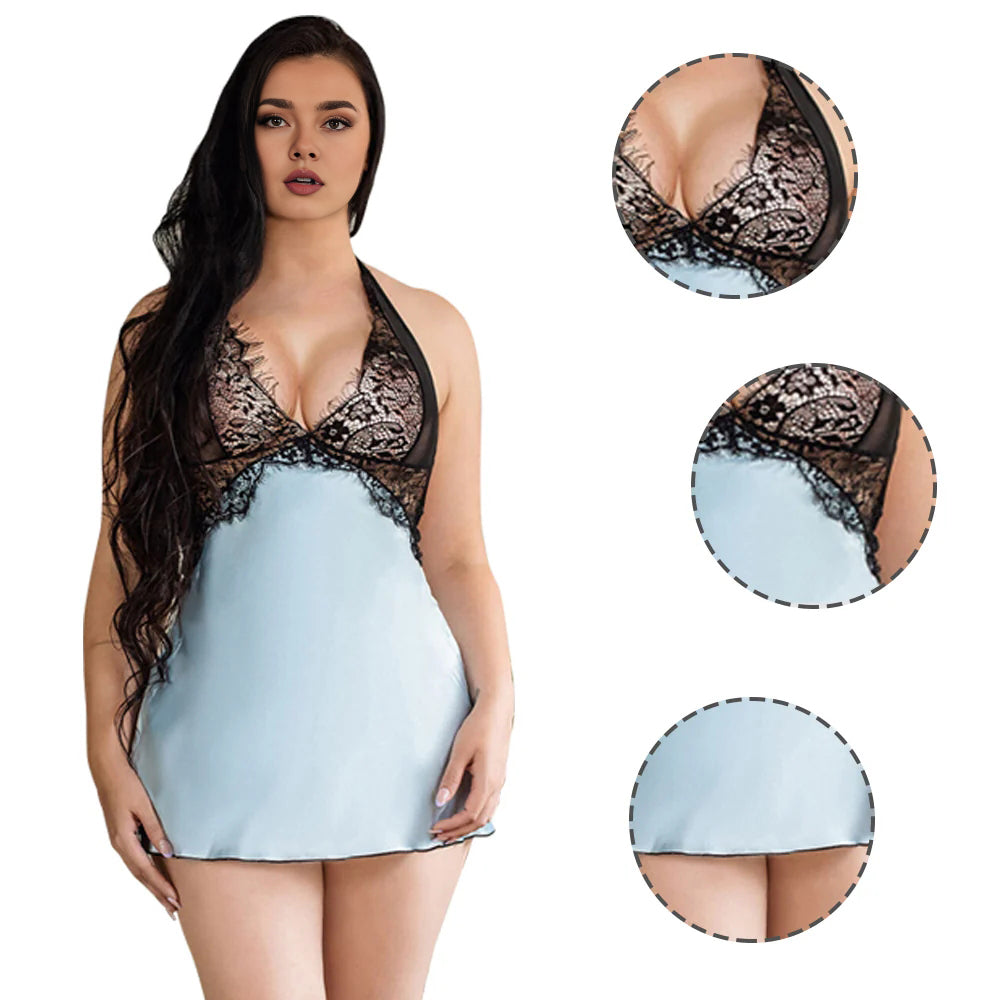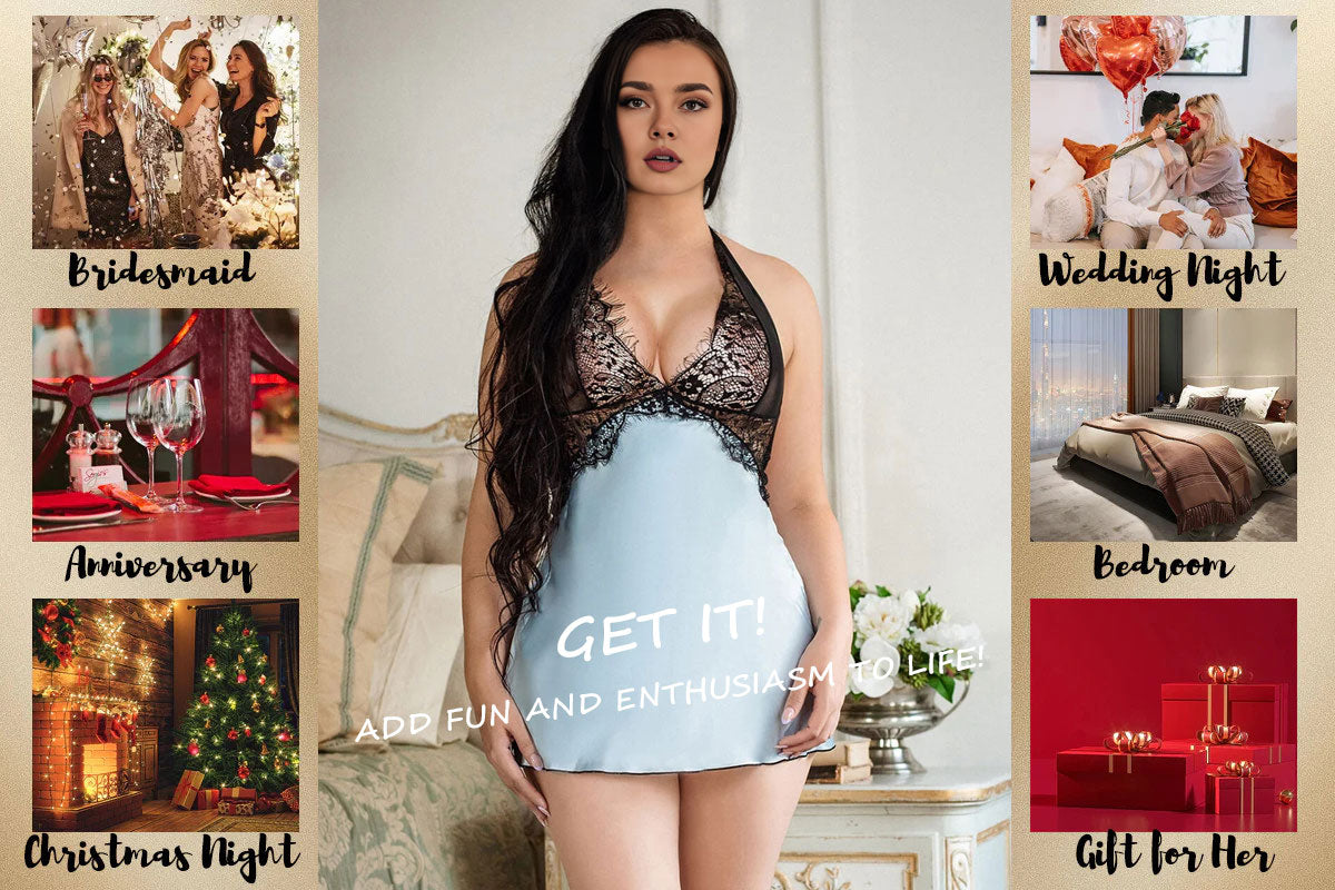 1.The blue babydoll lingerie set is made of faux silk and eyelash lace, soft and smooth to the skin, pretty exquisite and high-end.