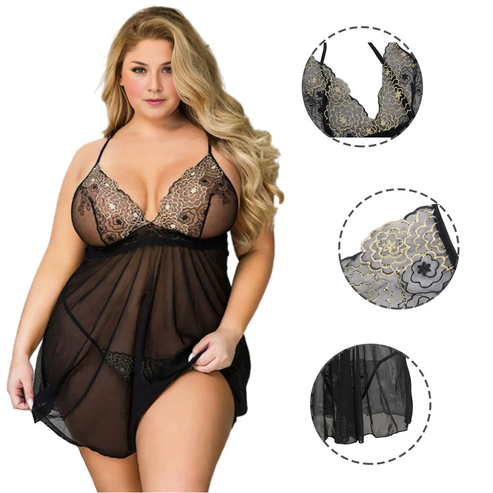 Women Plus Size Ladies Embroidery Mesh Sheer Sexy Babydoll .The fabric is both breathable and comfortable, ensuring you can wear this underwear all night without any discomfort. The see-through design adds a touch of bold sensuality, perfect for the woman who wants to be bold and confident.