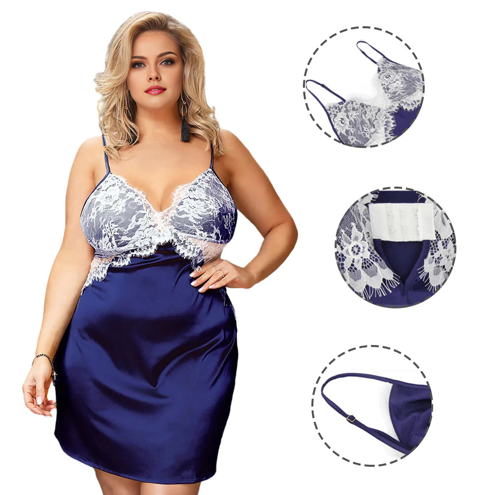 Women Plus Size Strap Satin sexy babydoll A pajama set that's as comfortable as it is charming. This set is perfect for women who want to feel confident and relaxed while they sleep. This nightgown is different from other pajama sets because of its unique features, which make it a must-have for any woman who wants to look and feel her best.