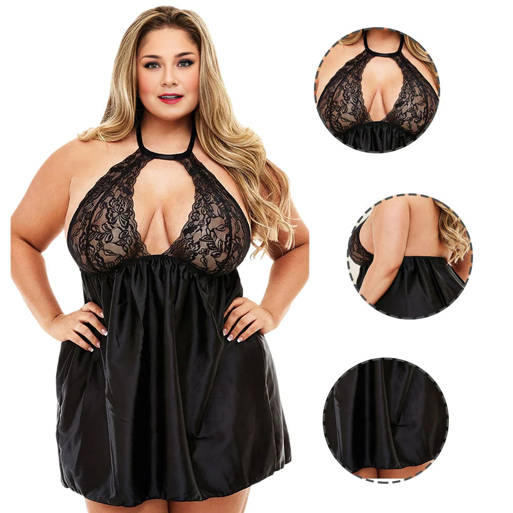 Womens Plus Size Lingerie Lace Babydoll Sexy Chemise Nightie with Snap Crotch Teddy.Delicate lash lace detailing at the bust and hem adds an extra touch of luxury to an already elegant design. The halter neck strap is also a unique touch, adding style and functionality to underwear. It laces up the back with more lashes for a cohesive and stunning look.