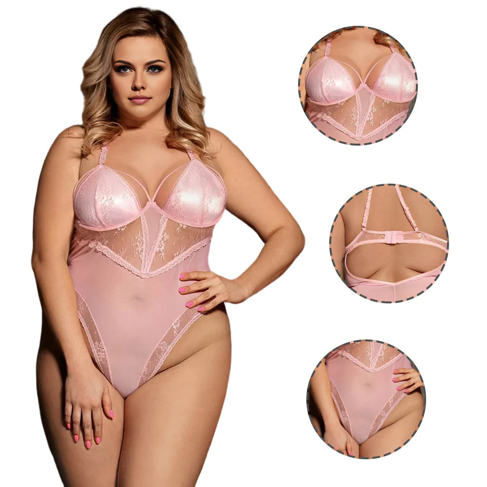 Women Plus Size Pink See Through Bodysuit is part of the Plus Size Bodysuit. Teddy bears are a must have for every woman who wants to be confident and beautiful. With its unique features including lightweight mesh, underwire, adjustable hooks, mother of pearl buttons, wavy hemline design and beautiful pink color, Teddy Bear is designed to suit your needs and make you feel sexy and confident all the time. So, treat yourself to Teddy Bear today!