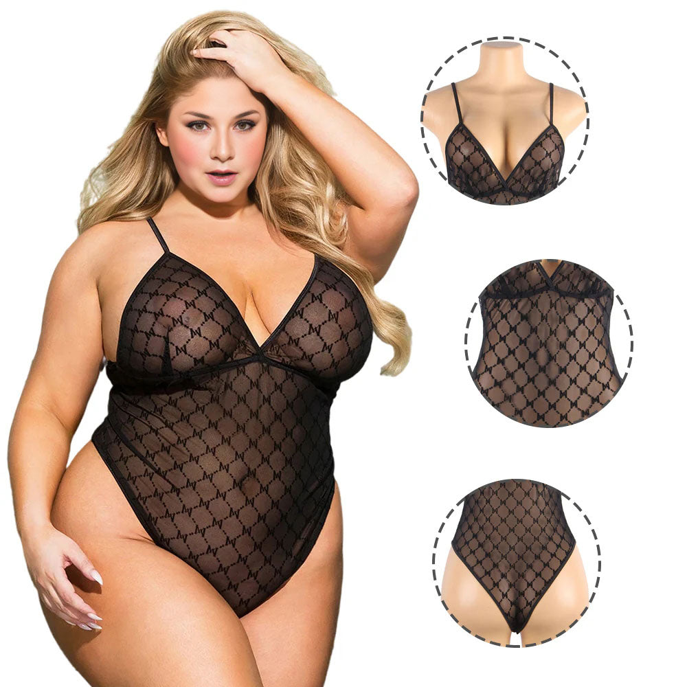 Women Plus Size Balck Mesh Stitching Teddy Bodysuit.Sexy Teddy Bear - The perfect lingerie for any intimate occasion! With this stunning piece, you'll feel confident and sexy while enjoying ultimate comfort and convenience. Let's take a look at some of the key features that make this sexy teddy bear a must-have.