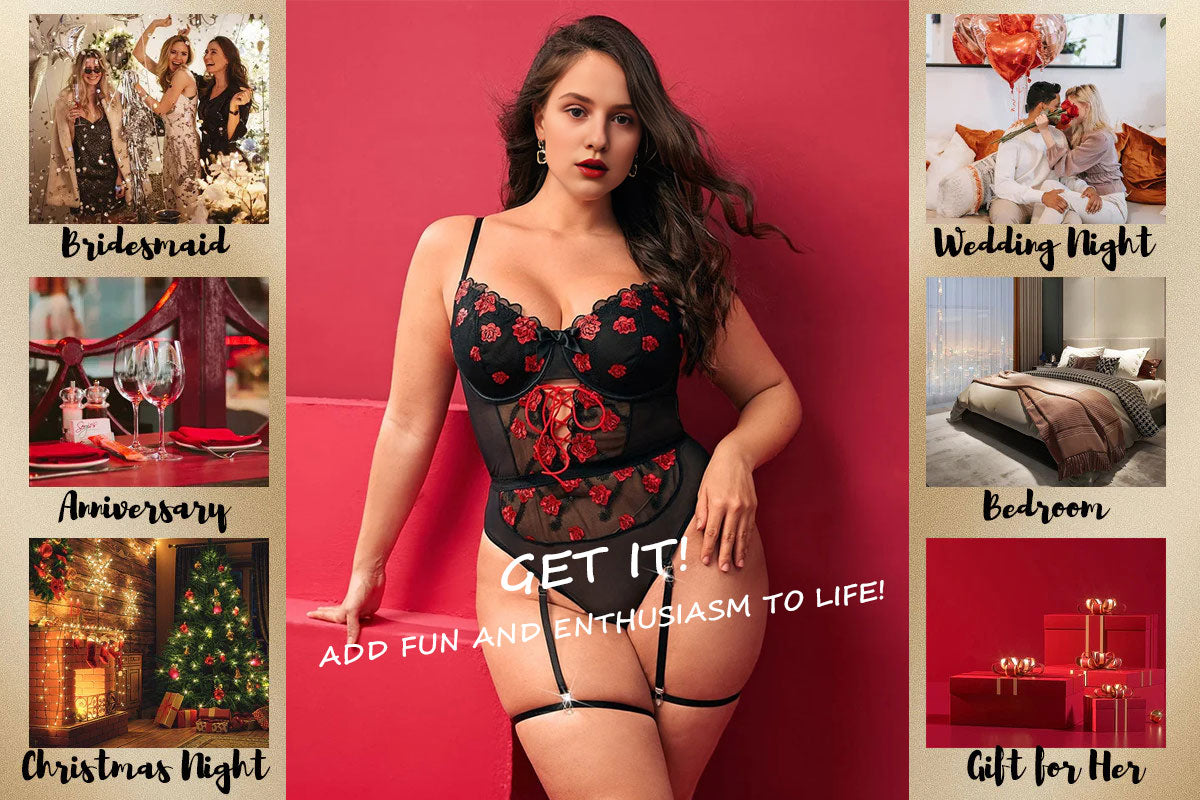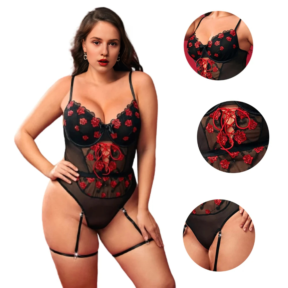 Women Plus Size Lace And Garter Bodysuit Perfect for women who want to look and feel sexy in lingerie. This stunning lingerie is designed to accentuate your curves and boost your confidence.