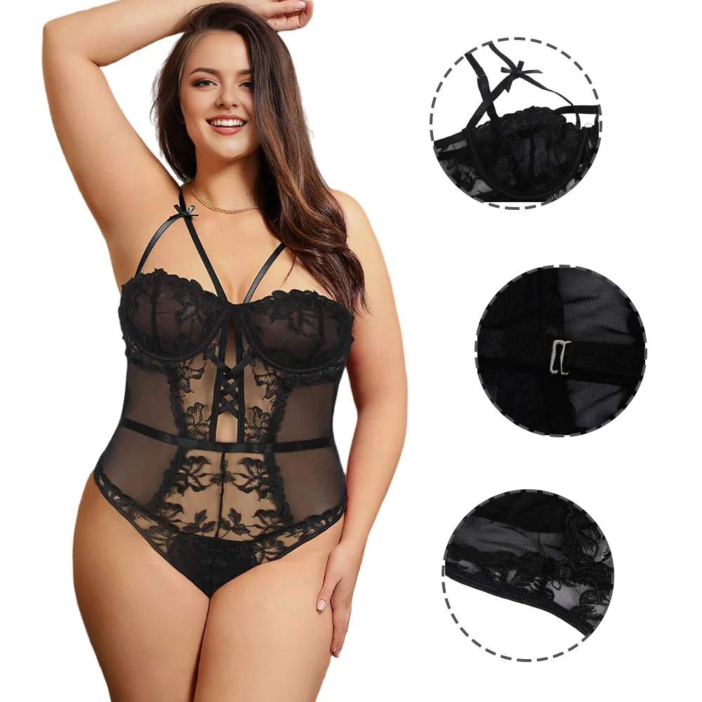 Women Plus Size One Piece Floral Mesh Bodysuit.Plus size teddy bear, the perfect blend of style, comfort and sexiness. Designed for women of all shapes, this product is available in sizes S-5XL, making it a great fit for every body type.