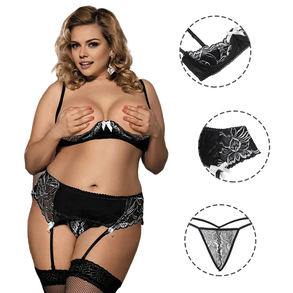 Women Plus Size Open Cup Sexy Underwear Bra Set.Made from high-quality materials, this lingerie set has many advantages that set it apart from other options. Let's take a closer look at what makes this bra set so special.