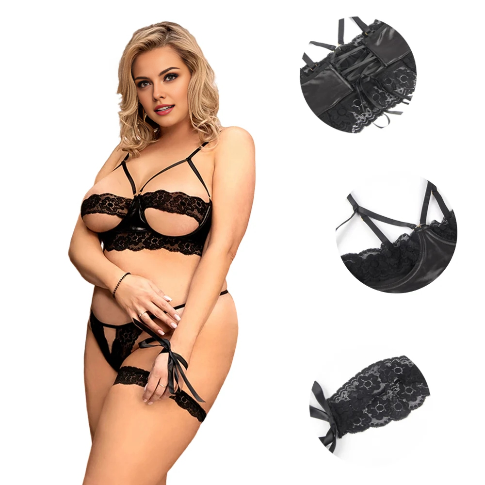 Women Plus Size Lace Leather Stitching Sexy Leg Loops Bra Set To complete the look, the set also comes with a leg strap that can be worn in multiple ways. Long ribbons can be tied around the wrist for a quirky accessory or around the ankle for a more traditional look. The leg harness can also be tied in a bow or knotted, allowing you to customize your look according to your mood or preference.