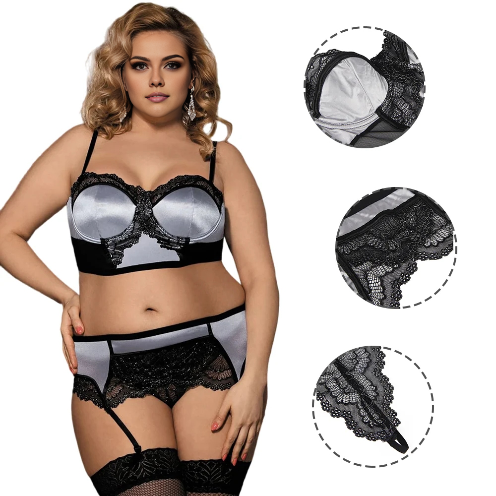 Women Plus Size Satin Underwire Cup Lace Bra Set.No womenswear is complete without underwear. It not only boosts their confidence but also enhances their beauty. the well-known lingerie brand, has launched its latest craze bra set. Combining comfort and elegance, this bra set is a must-have in every woman's wardrobe.