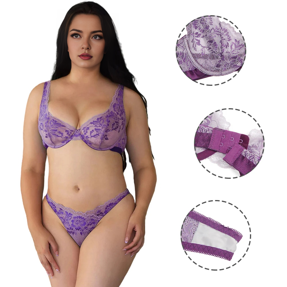 Women Plus Size Sexy Floral Two-Tone Lace Bra Set.This provides excellent support and helps create a flattering and feminine silhouette. You can also customize the fit to your unique body shape thanks to the adjustable back closure and adjustable shoulder straps.