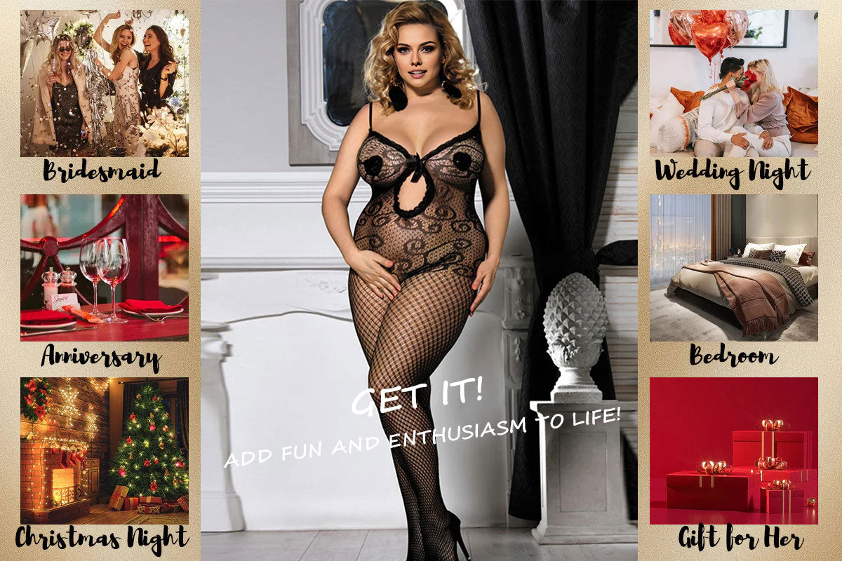 Women Plus Size Black Mesh Pothole and Fishnet Bodystocking.These body socks are made of high-quality materials that will last for a long time. The fabric is soft, breathable, and comfortable so you can wear it for extended periods of time without feeling restrictive or uncomfortable. Covers the entire body, perfect for women who want to feel confident and sexy while covering imperfections.