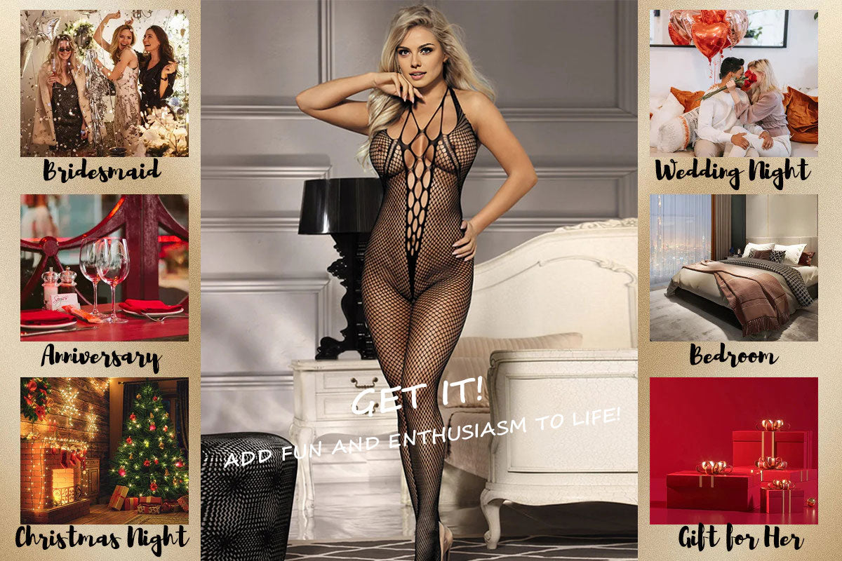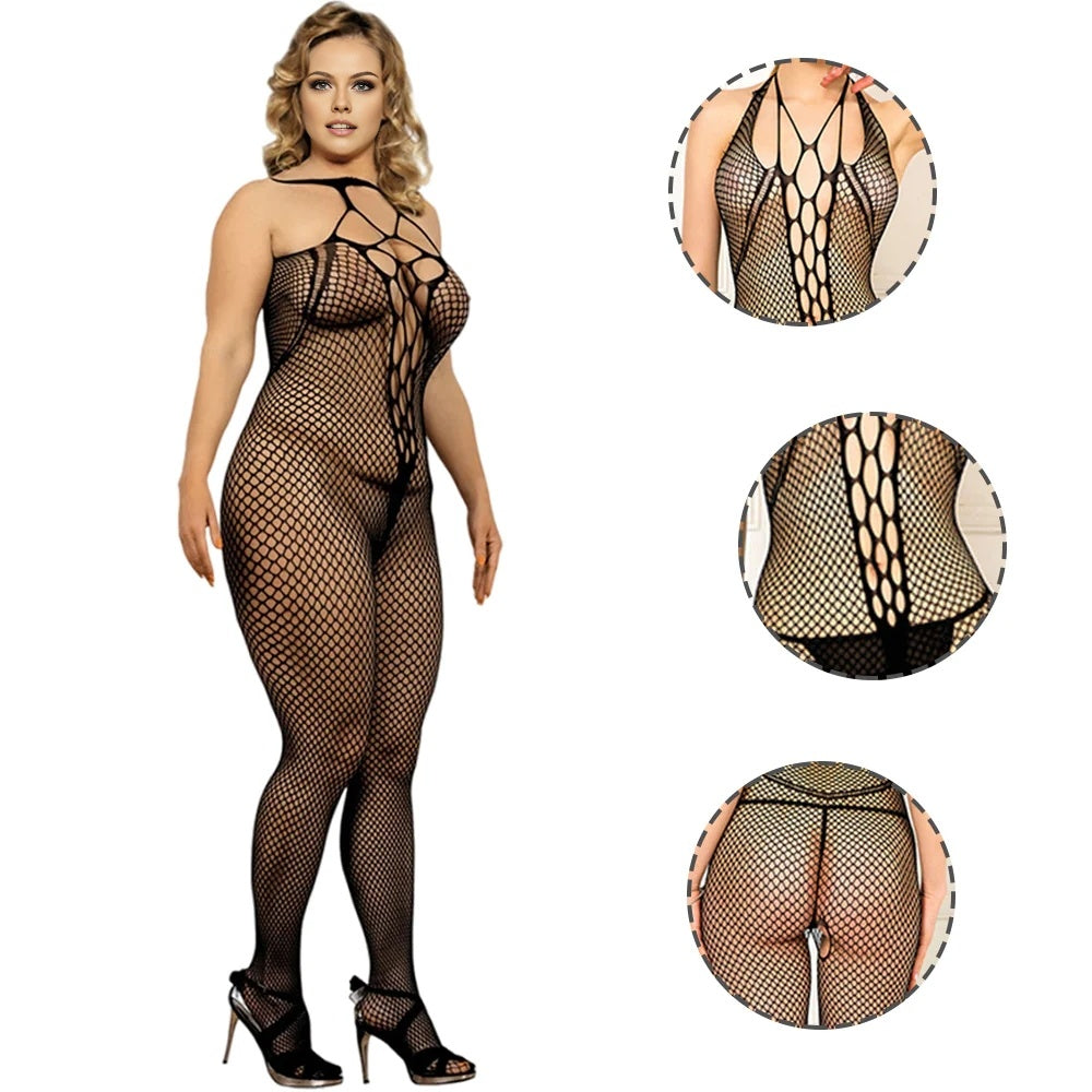 Women Plus Size Halter Sexy Neck Open Back Netted Bodystocking.These body socks are made of high-quality materials that will last for a long time. The fabric is soft, breathable, and comfortable so you can wear it for extended periods of time without feeling restrictive or uncomfortable. Covers the entire body, perfect for women who want to feel confident and sexy while covering imperfections.