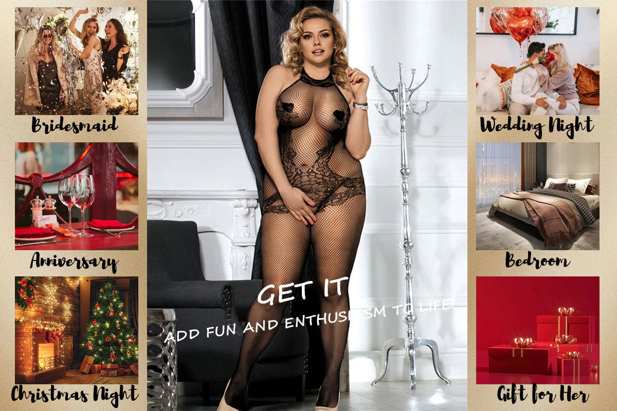 Women Plus Size Lace and Fishnet Turtleneck Bodystocking.These body socks are made of high-quality materials that will last for a long time. The fabric is soft, breathable, and comfortable so you can wear it for extended periods of time without feeling restrictive or uncomfortable. Covers the entire body, perfect for women who want to feel confident and sexy while covering imperfections.