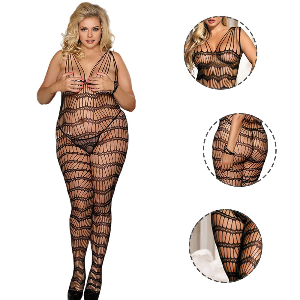 Women Plus Size Strappy Shoulders Sheer Open Net Bodystockings is part of the Plus Size BodyStockings. Body socks are available in sizes Medium and XL, ensuring that every woman can find the perfect fit for her. High stretch nylon threads ensure the tights fit seamlessly, no matter your shape or size. Specifically designed for women, these tights accentuate every curve of a woman's body, making them look and feel their best.