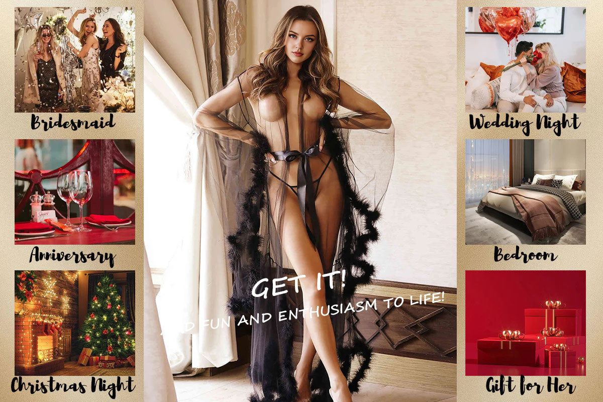 Women Plus Size Sheer Feather Long Robe Nightgown is part of the Plus Size Robes. Available in women's sexy lingerie and plus size lingerie, this line has everything you need to look and feel your best. Order today and experience the sexiness and power you can feel in the Feather Lingerie.